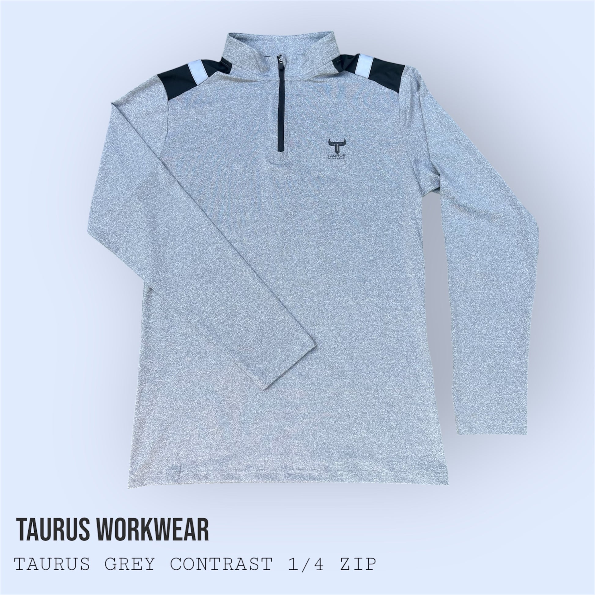 Taurus grey 1/4 zip. Stay comfortable and stylish on the job with this versatile grey performance pullover. Designed for active jobs, this long-sleeve top features a soft, breathable stretch fabric that offers both comfort and flexibility. The 1/4 zip closure allows for customisable ventilation, while the contrast shoulder panels add a sleek, modern touch. Subtle branding on the chest completes the look with understated confidence.