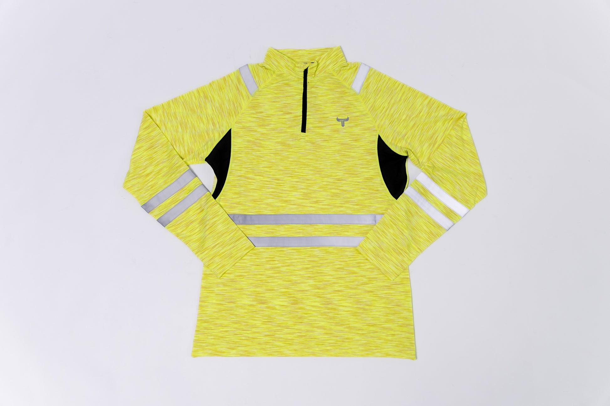 Stay safe and visible with our 1/4 zip reflective long sleeve top. Designed for maximum visibility and comfort, our yellow 1/4 zip is the perfect choice for construction, roadside, warehouse, and outdoor work environments. Made from durable, breathable fabric, it features high-contrast reflective strips and a convenient quarter-zip design for easy on-and-off wear. Whether you're on the job site or working after dark, this top keeps you seen and safe without compromising on mobility or comfort.